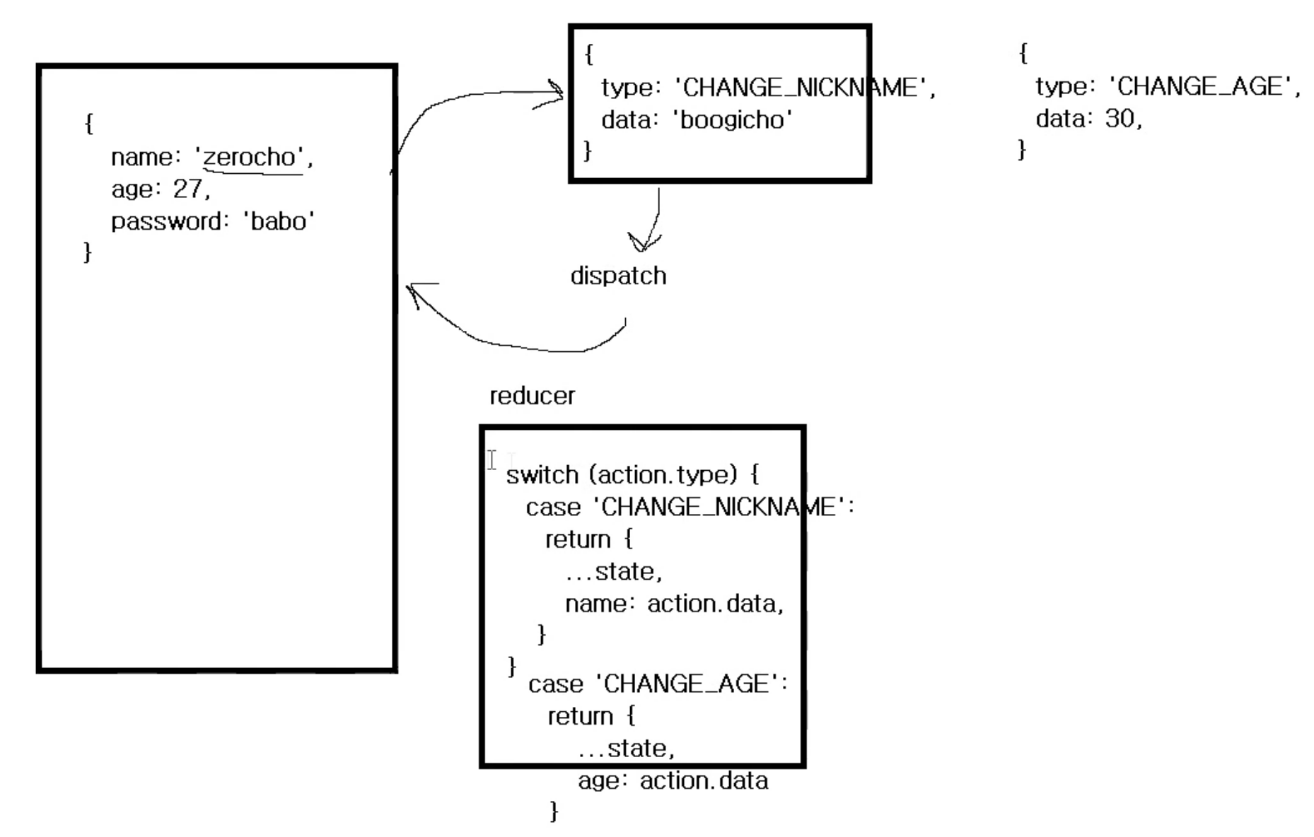 action을 만드는 이유는, history를 남기기 위해서. (타임머신, 디버그)